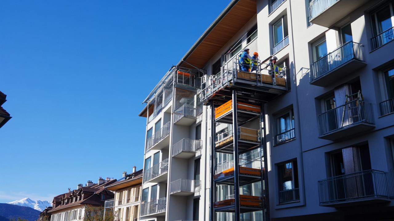 Le recours à un monte-charge ou monte-meubles transforme radicalement l’expérience du déménagement à Annecy. Cette nacelle motorisée permet de déplacer des objets lourds et volumineux directement par les fenêtres ou balcons, évitant ainsi la contrainte des escaliers étroits et des passages restreints typiques des immeubles annéciens. Les gains de temps sont considérables puisque des témoignages rapportent la possibilité de transporter l’ensemble des meubles d’un appartement au cinquième étage en moins de trois heures, contre une journée entière avec les méthodes traditionnelles.